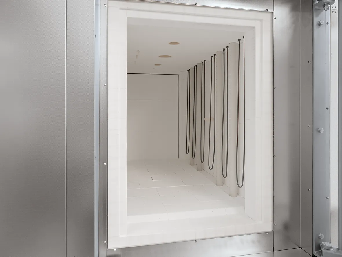 - Separate discharge of exhaust gases during debinding and exhaust air during cooling via separate outlets with motor-driven flaps