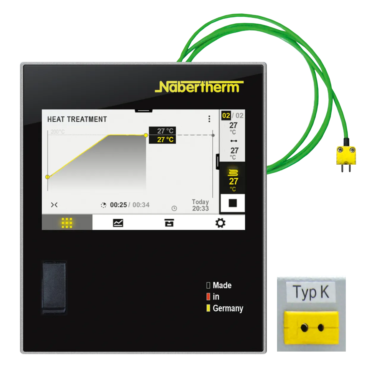 Los procesos de calentamiento y enfriamiento se pueden adaptar de forma individual a la carga, en la caja de protección de gas. La temperatura en la caja protección de gas, se mide mediante un termopar adicional. Con el controlador P570/P580, se comparan las temperatura de la cámara y de la caja de protección de gas, y se controla la temperatura de la cámara del horno, de forma que se la curva de temperatura en la caja de protección de gas, sea la deseada.