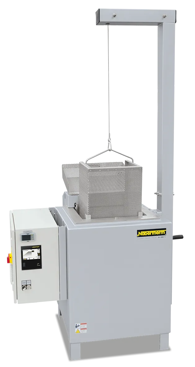 Les fours à bain de sel QS 20 - QS 400 destinés à la trempe martensitique sont remplis de sel neutre se distinguant par une transmission rapide et intensive de la chaleur sur la pièce à traiter et par une très bonne homogénéité de température. La charge étant traitée thermiquement sans oxygène, la décarburation et les colorations de surface sont réduites au minimum. Avec des températures de travail entre 180 °C et 550 °C, ces fours à bain de sel sont utilisés pour une trempe et un refroidissement n‘occasionnant qu‘une très faible déformation de la pièce. Fours utilisés aussi pour la trempe bainitique permettant d‘obtenir une dureté optimale, pour le recuit de recristallisation après usinage par électroérosion, ou pour le bleuissage. La trempe ou le refroidissement en bain de sel est utilisé pour obtenir une homogénéité de température dans toute la pièce avant la formation de martensite. Ce procédé évite la déformation et la formation de fissures sur des pièces aux formes complexes lors de la trempe. Le revenu dans un bain de sel est équivalent au revenu dans un four à circulation d’air. Ce procédé est utilisé pour réduire la dureté d'une pièce trempée à la dureté désirée, augmenter la ténacité et réduire les tensions dans la pièce. La trempe banitique s'impose quand il s'agit d'obtenir une ténacité et une faible déformation sur les aciers faiblement alliés. Grâce à la trempe banitique, les pièces présentent une grande résistance à la traction et une bonne élasticité.