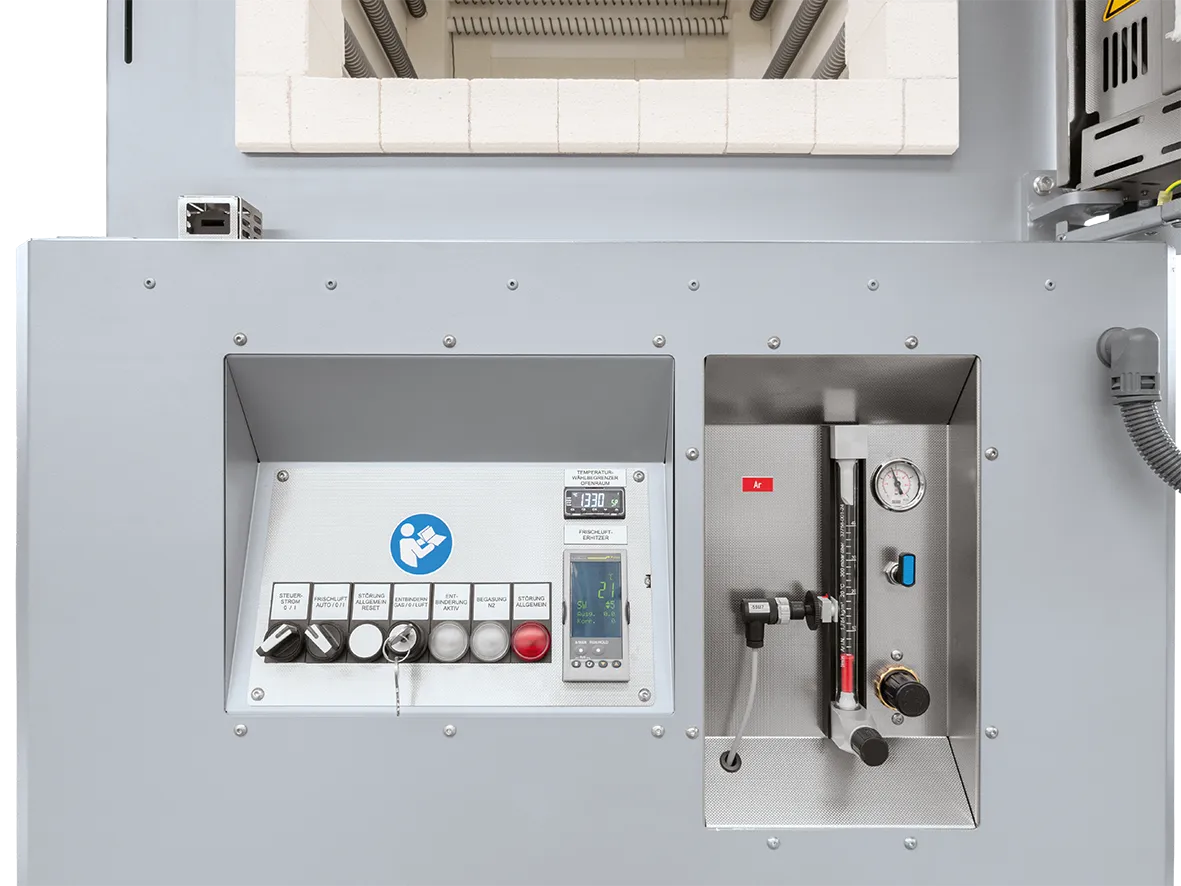 • Automatic gas supply system for flushing the furnace chamber or the optional protective gas box with non-flammable process gases