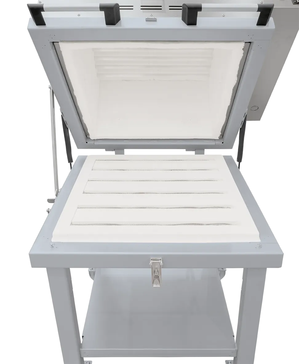 - Handles on the left and right side of the hood for opening and closing the furnace